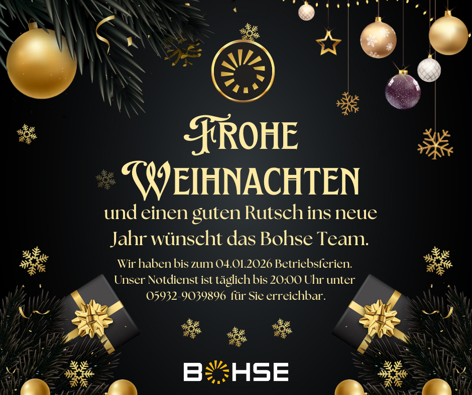 Gepostet auf Konrad SpinnekerTrustindex überprüft, ob die Originalquelle der Bewertung Google ist. Seit Jahren sind wir zufriedene Kunden der Firma Bohse. Ab 2020 haben wir das Erdgeschoss komplett umgebaut. Alle Wasser, Heizung und Bad Installationen wurden durch die Fa. Bohse vorgenommen. Im Jahr 2024 wurde eine Photovoltaikanlage mit Speicher und Wallbox sowie eine Wärmepumpe montiert. Bei all diesen Maßnahmen wurden wir sehr gut beraten. Die Ausführung der Arbeiten, die Begleitung, der Informationsfluss, die Terminabsprachen und die weitere Betreuung klappten super. Wir möchten ein großes Lob an die Mitarbeiter aussprechen und die Firma Bohse gerne weiterempfehlen.Gepostet auf Joris PrangsmaTrustindex überprüft, ob die Originalquelle der Bewertung Google ist. Firma Boshe installierte eine Wärmepumpe und tauschte einen defekten PV-Wechselrichter aus. Die Arbeiten wurden zum vereinbarten Termin fachgerecht und sauber installiert. Die Kommunikation war gut und klar. Sehr empfehlenswert!Gepostet auf Guido SchmitzTrustindex überprüft, ob die Originalquelle der Bewertung Google ist. Von der Information und Bestellung bis zur Inbetriebnahme der Photovoltaikanlage ca.4 Wochen. Auch 20 Jahre nach Installation und Wartung (Wartungsvertrag)unserer Heizung, wurden wir auch bei der Beratung und Installation einer 10KW Photovoltaikanlage inklusive Speicher und Wallbox, nicht enttäuscht. Immer wiederGepostet auf Ludger VehringTrustindex überprüft, ob die Originalquelle der Bewertung Google ist. Die Firma Bohse hat bei mir eine PV Anlage inkl. Speicher montiert. Von Angebotsdurchsprache bis Inbetriebnahme hat dies nur 11 Tage gedauert. Tolle Arbeit und extrem zuverlässig. Sehr empfehlenswert.Gepostet auf you candoTrustindex überprüft, ob die Originalquelle der Bewertung Google ist. Gestern Abend hatte unsere Öl-Heizung eine Störung! Kundendienst bestellt und schon am nächsten Tag war der Monteur vor Ort und hat das Problem zuverlässig gelöst. Danke!Gepostet auf Frank NeilingTrustindex überprüft, ob die Originalquelle der Bewertung Google ist. Seit über 12 Jahren mein Fachbetrieb für alles rund um Heizung, Wasser und Solaranlage. Ende Oktober 2023 war es dann wieder soweit, ein etwas größeres Projekt. Eine Wärmepumpe sollte unsere Gasbrennwertterme ersetzen. Von Montag bis Freitag wurde das Projekt ohne große Probleme umgesetzt. Am Freitag wurde die Wärmepumpe dann eingestellt und sorgt seit Ende Oktober für warme Räume und heißes Wasser. Die Beratung und der Service waren wieder einwandfrei und alles wurde zur vollsten Zufriedenheit umgesetzt. Wichtig ist, dass sich der Kunde mit den Eigenarten und Möglichkeiten einer Wärmepumpe ausreichend selber beschäftigen. Leider nicht immer Plug and Play… hier hilft aber der Fernzugriff der Firma Bohse. Fazit: 3,5 Monate läuft alles perfekt und auch der Stromverbrauch entspricht meinen Erwartungen. Danke an das Team der Firma BohseGepostet auf Christel HonnigfortTrustindex überprüft, ob die Originalquelle der Bewertung Google ist. Zuverlässige und schnelle Ausführung einer Reparatur bzw. Tausch eines Wechselrichters. Nur zu empfehlen!Gepostet auf Ulrich BorschTrustindex überprüft, ob die Originalquelle der Bewertung Google ist. Sehr kundenfreundlicher und bei neuen Techniken gut aufgestellter BetriebGepostet auf Frank SandersTrustindex überprüft, ob die Originalquelle der Bewertung Google ist. Note 1! Super Kundendienstmonteur. Klasse Arbeit, sehr höflich und alles toll erklärt. Definitiv zu empfehlen.